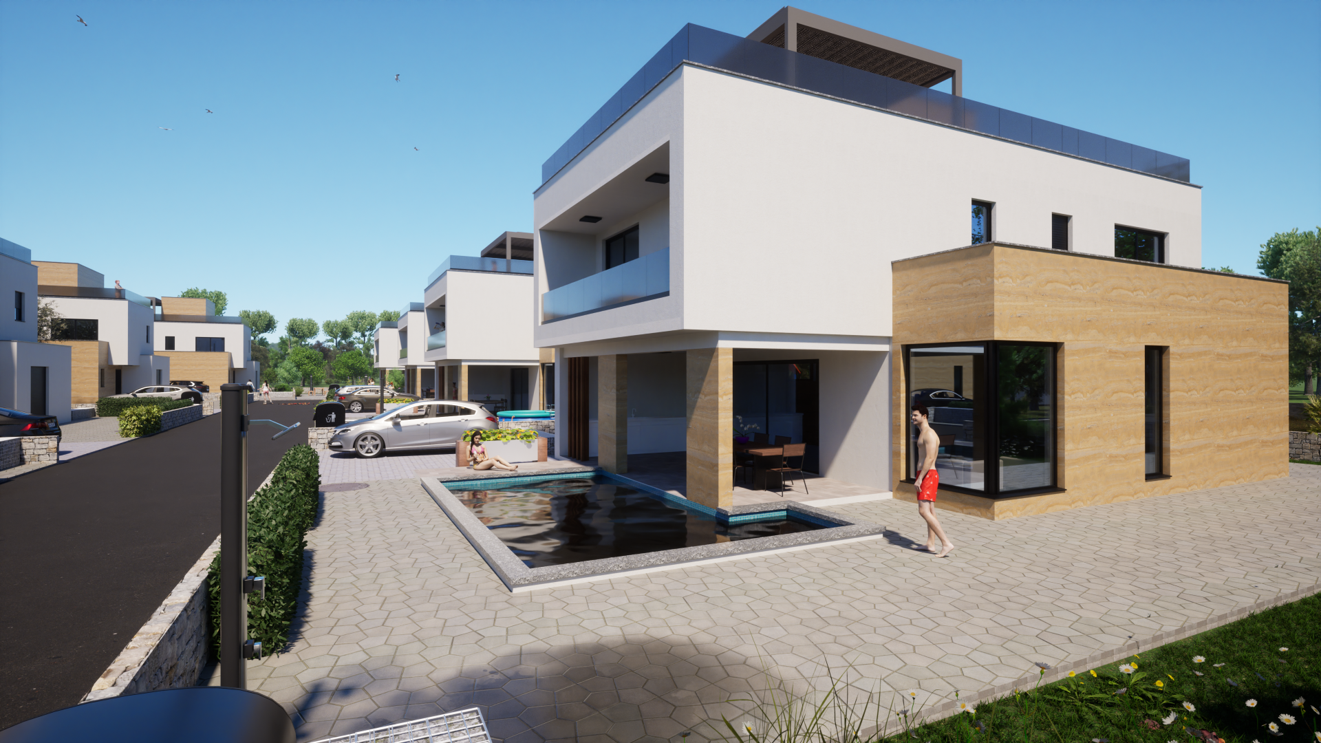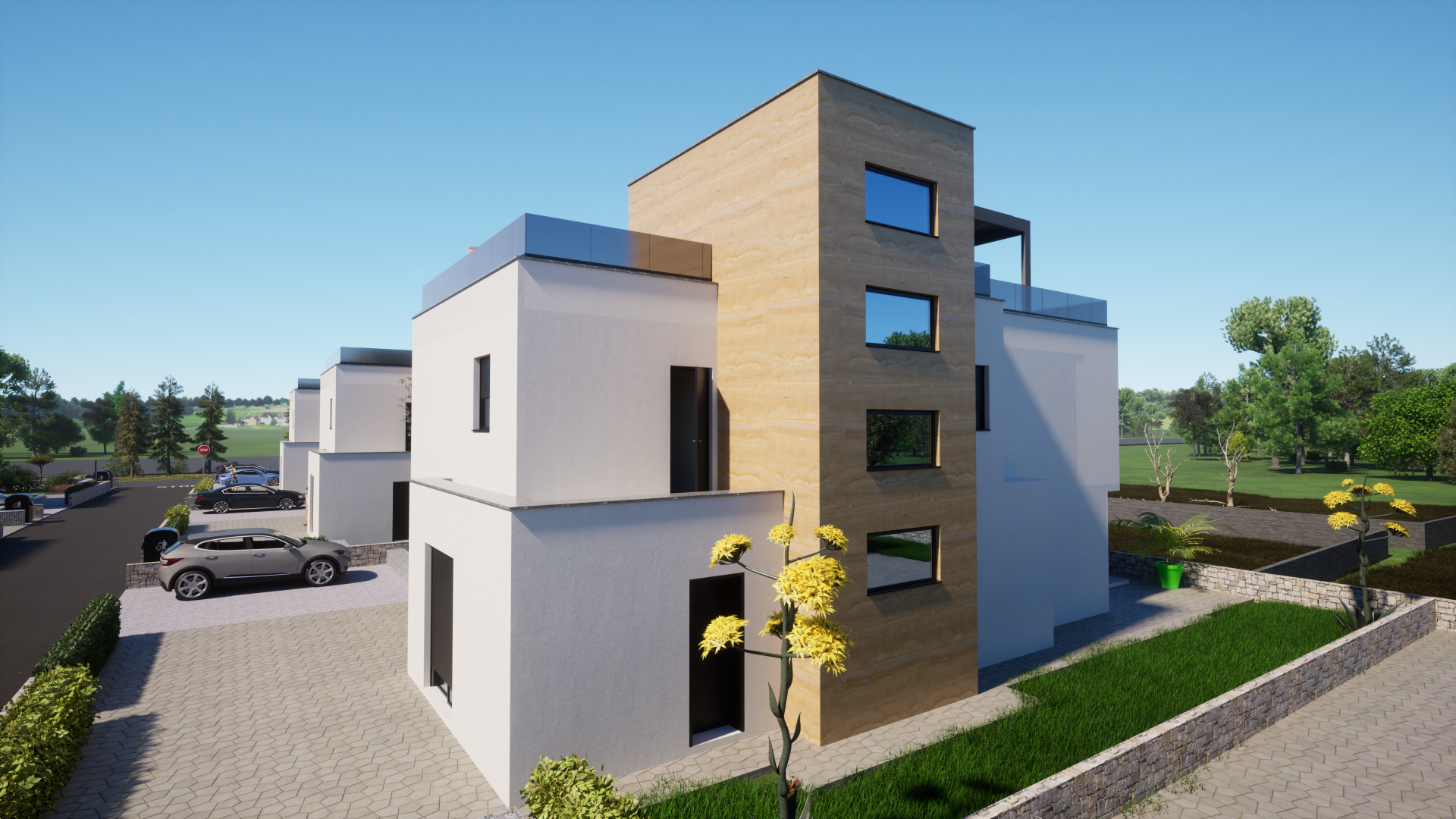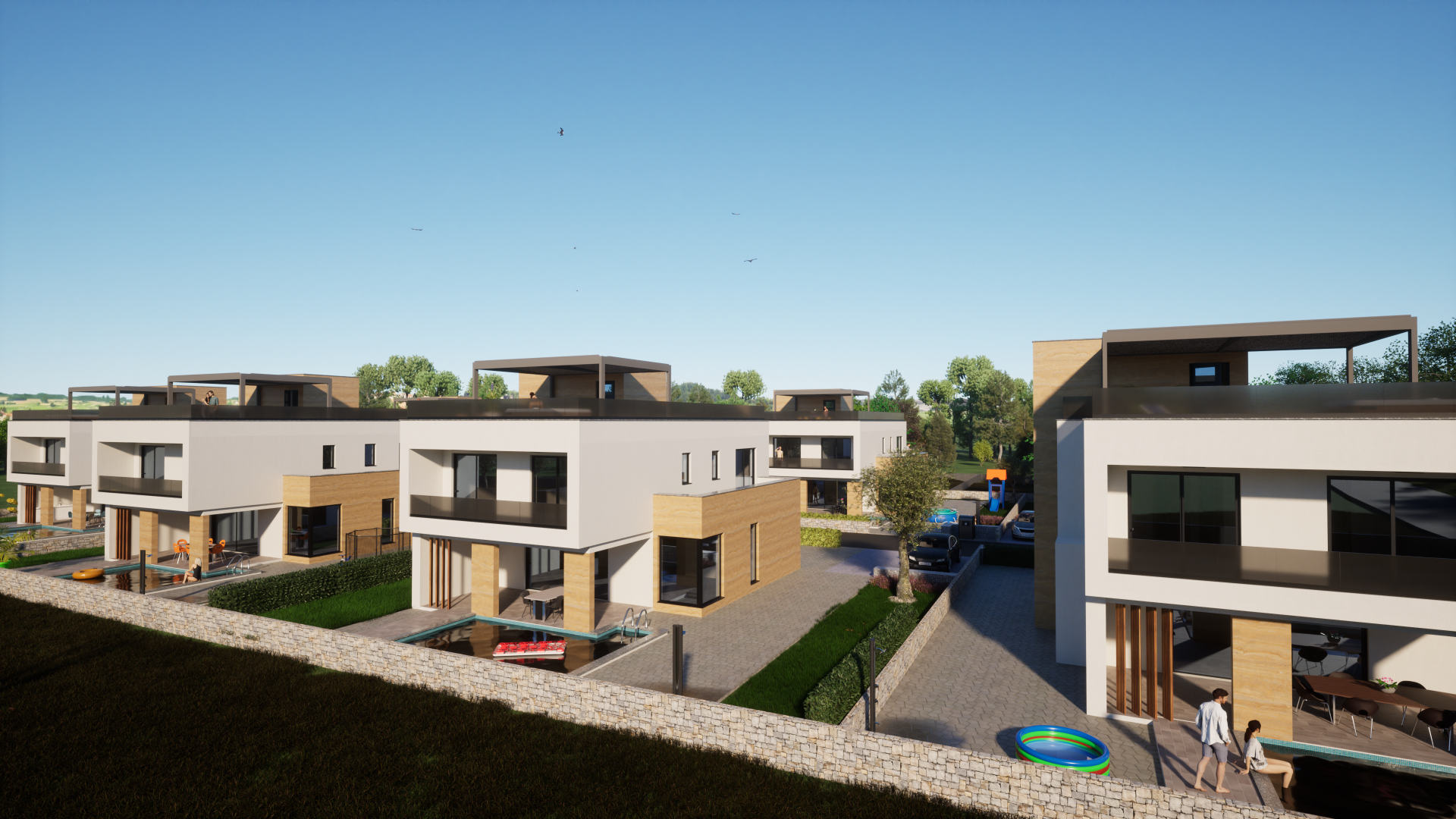 Zadar Luxury Villas are a closed complex of eight identical 4-bedroom villas on 500m2 plots, combining modern with traditional architecture and construction with a swimming pool, jacuzzi, SPA, electric vehicle charging station on a wonderful location near Zadar / Dalmatia with a panoramic view of the sea, build with demanding guests or owners in mind, that are seeking a high quality of location to build quality to return on investment ratio.